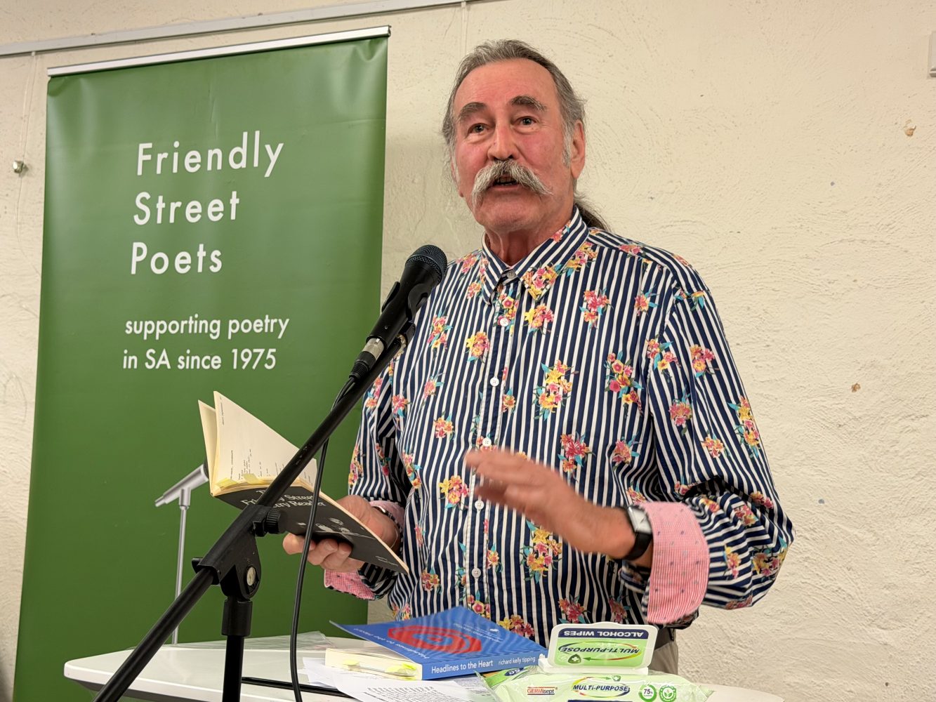 Friendly Street is the longest running poetry reading in the Southern Hemisphere. Established in 1975, the collective has now been hosting regular monthly events in Adelaide for over fifty years. Typically, evening activities comprise poetry readings by established poets, followed by an ‘open mic’ when anyone is welcome to read their work. The poet Vincent Buckley once declared Friendly Street ‘the best poetry reading in Australia’, while acclaimed author, Geoffrey Dutton, asserted that Friendly Street has ‘probably done more for poetry in Australia than any other group’. In addition to a vibrant community culture which has fostered many well-known South Australian writers, Friendly Street oversees four poetry prizes as well as regular poetry events across schools and regional South Australia. Friendly Street’s unique contribution to South Australia’s cultural life can be traced through the anthologies published annually since 1977. Its unique social history has been documented in: Tuesday Night Live: Fifteen Years of Friendly Street (1993), Best of Friends: The First Thirty Years of Friendly Street Poets (2008) and Chronicle: The First Fifty Years of Friendly Street (2025 and 2026).